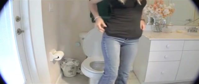 Slim blonde girl pooping