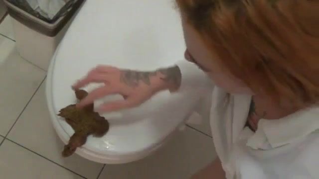 Redhead slut eating fresh poop from a public bathroom. She smears it on her entire face. She loves to do that in random plaes.