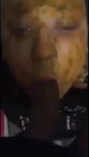 He smears poop on a slut's face. He starts face fucking her hard after.