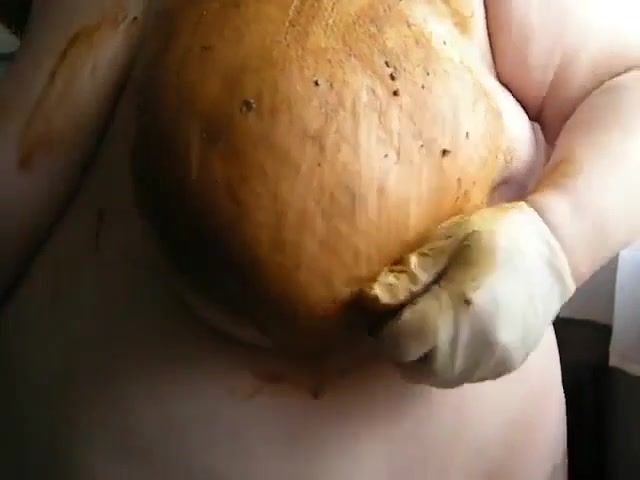 Smearing poop on big tits