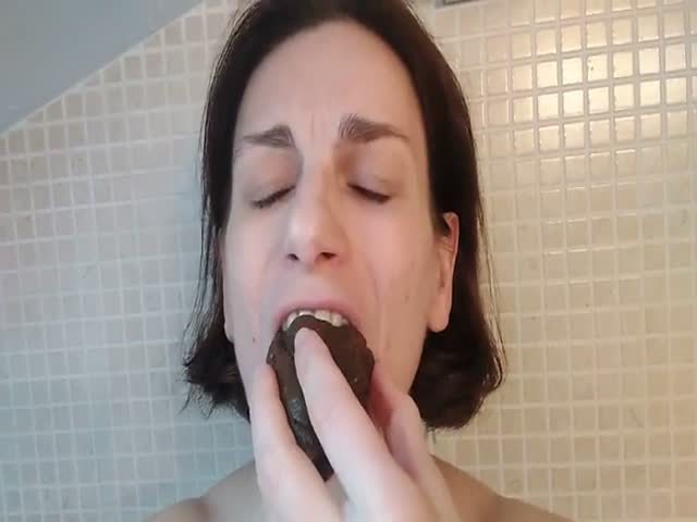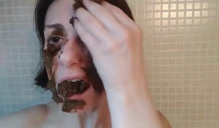 Naughty milf decides to smear fresh shit on her pretty face and natural tits.