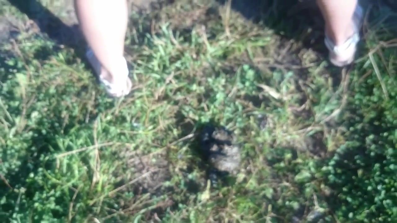 Beautiful blonde milf smears poop on her pretty face in a public place.