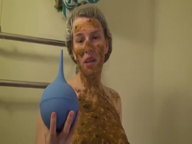 Hot milf smears fresh poop on her sexy body before taking a shower. She loves to masturbate with crap.
