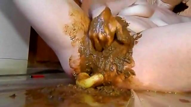 Smearing shit with dildo