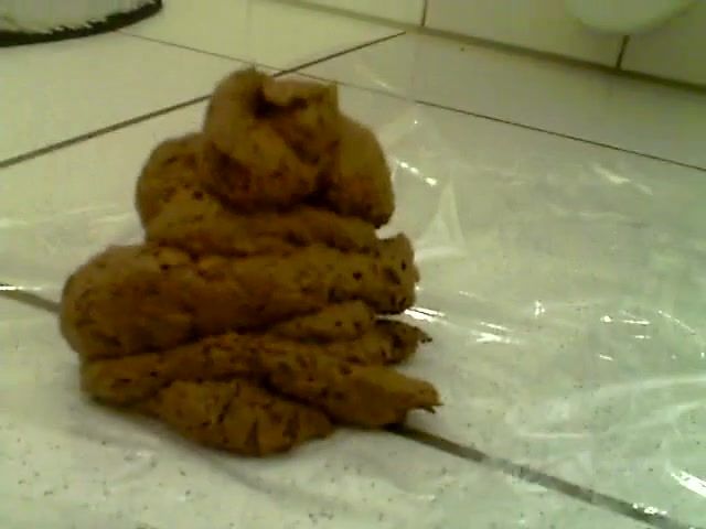 Ebony girl spreading her butt cheeks wide opened while she's pooping a big one on bathroom floor.