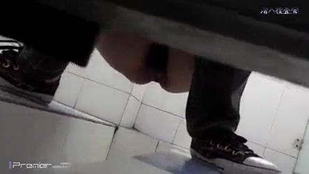 Using a hidden camera to spy on a sexy teen that's pooping in a public place.