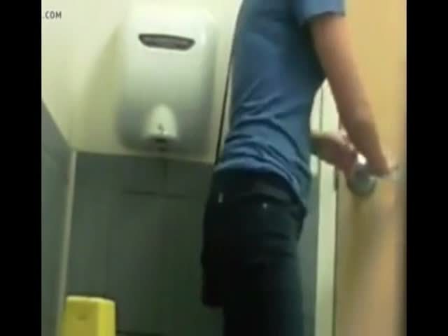 He's using a hidden camera to spy on a brunette teen that's pooping in public bathroom.