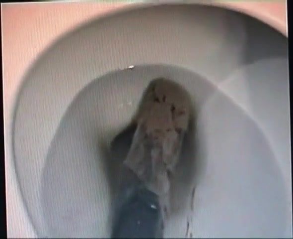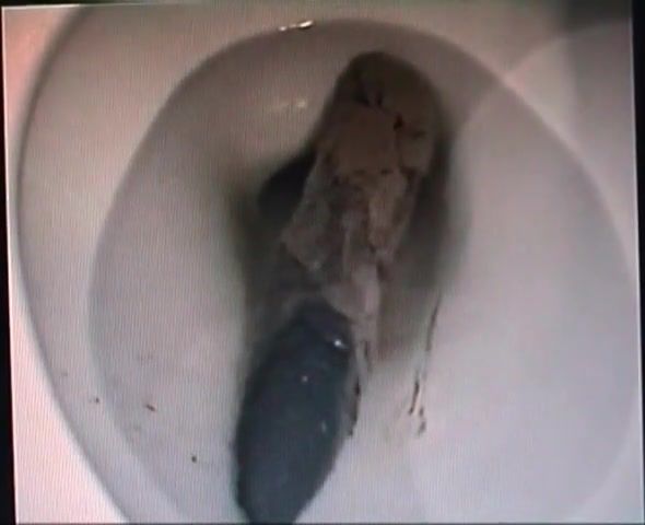 Sick guy is using a hidden camera to spy on a brunette babe that's pooping.