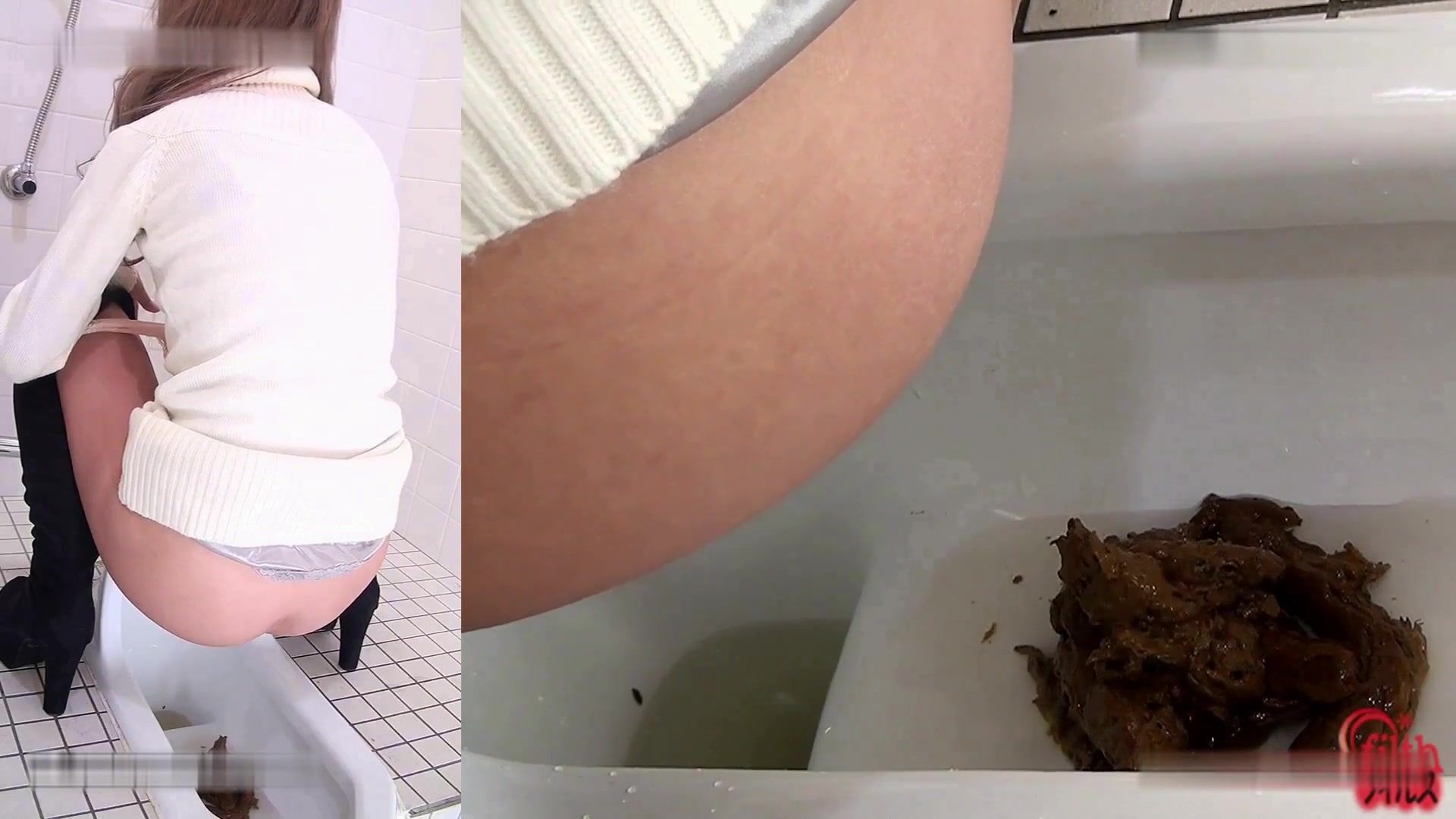 Using a hidden camera to spy on a beautiful japanese girl that's pooping a lot.