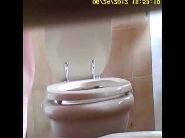 Using a hidden camera to spy on a chubby wife that's pooping over toilet.