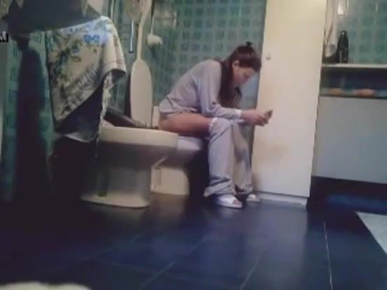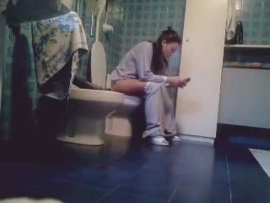 Using a hidden camera to spy on a sexy teen shitting and peeing.