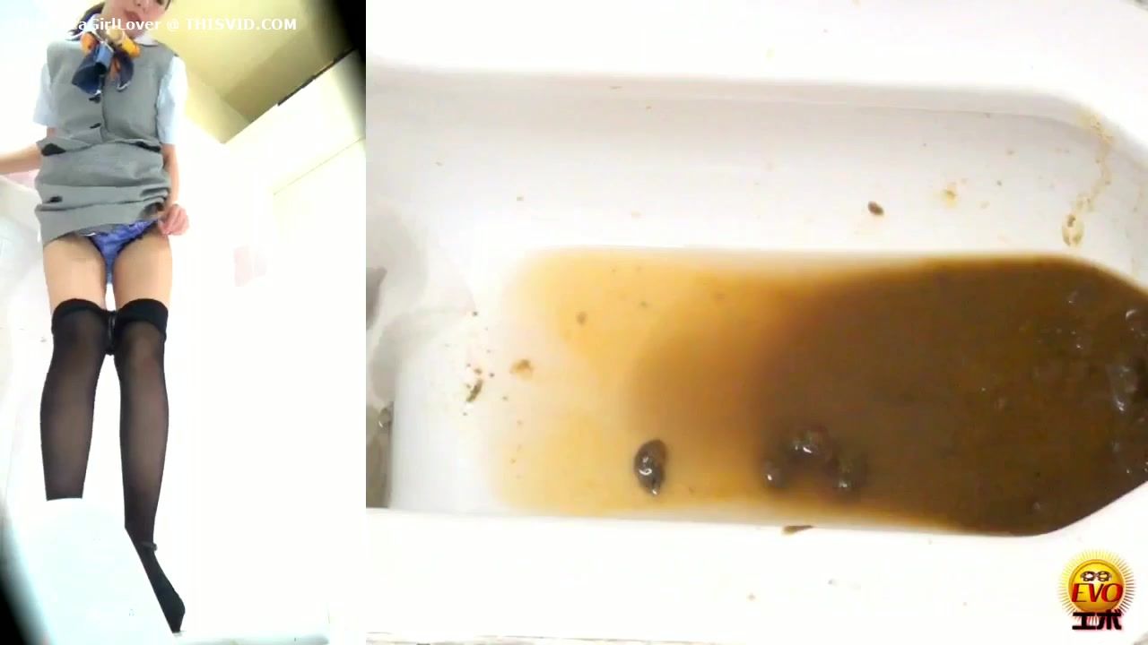 Sexy girl has diarrhea because she ate bad food at lunch. She squirts poop in toilet.