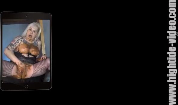 Stunning huge boobs lady in stockings smearing shit