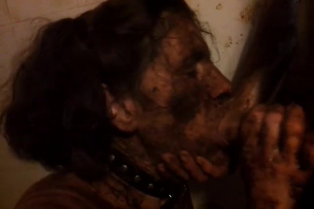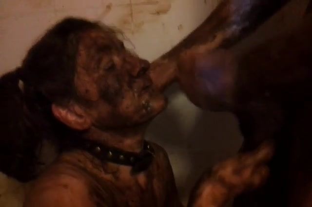Mature brunette woman smears fresh shit on her entire body…she starts sucking a big cock after that until he cums on her face.