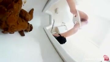 Sweet brunette Japanese girl pooping
