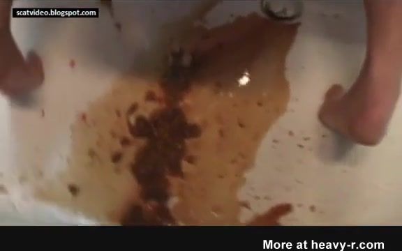 Brunette female slave forced to inject water in her ass so she can easily poop after.