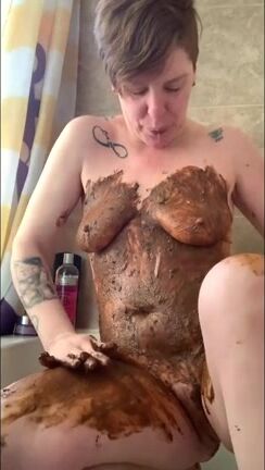 Sweet looking chick rubbing shit on her yummy boobs and body