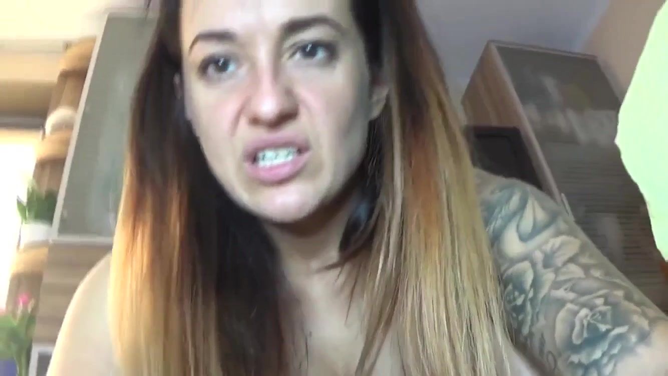Tattooed babe can't stop squirting liquid shit on bedroom floor.