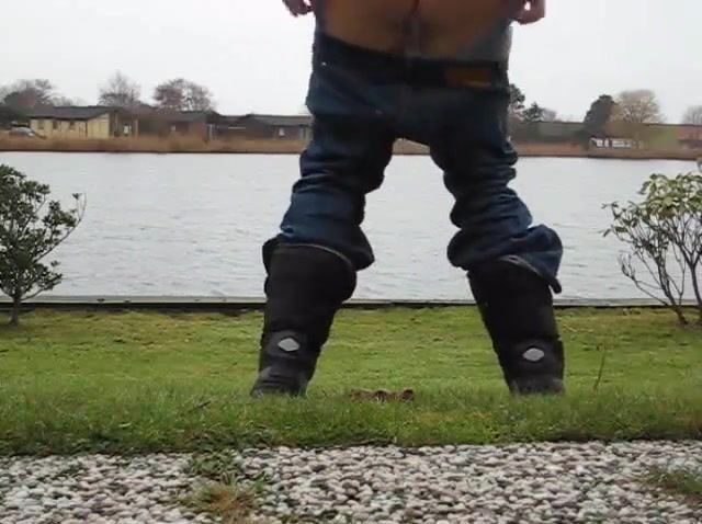 Tattooed babe shitting outdoor