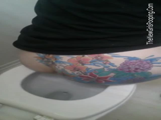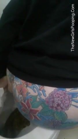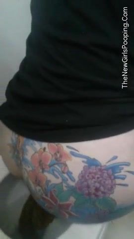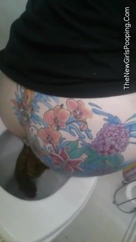 Tattooed babe shits big turds in toilet. She refused to wipe her dirty ass after she's done.