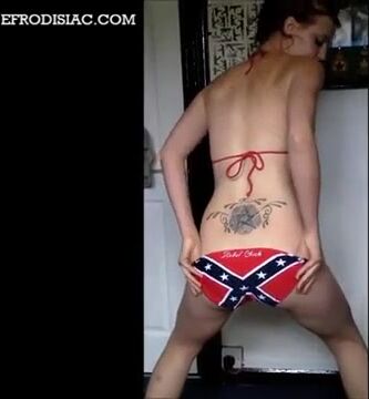 Tattooed brunette babe teasing and pooping