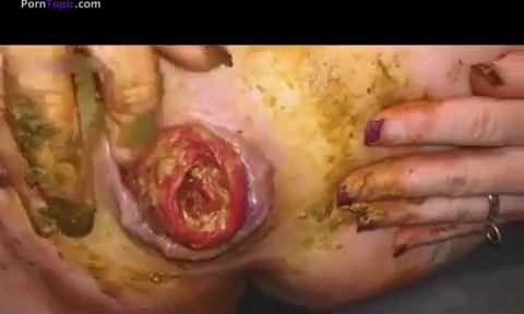 Redhead German babe smears liquid shit on her pussy and ass. She masturbates in unique way.