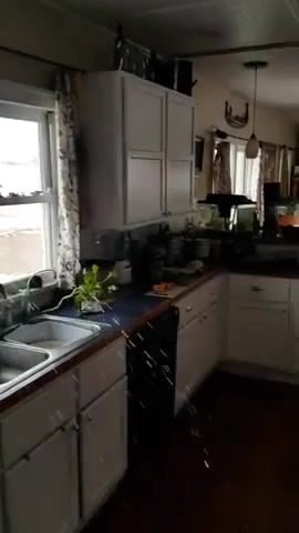 Tattooed milf peeing with pressure on kitchen floor. She spreads her legs wide opened to tease us with her shaved pussy.