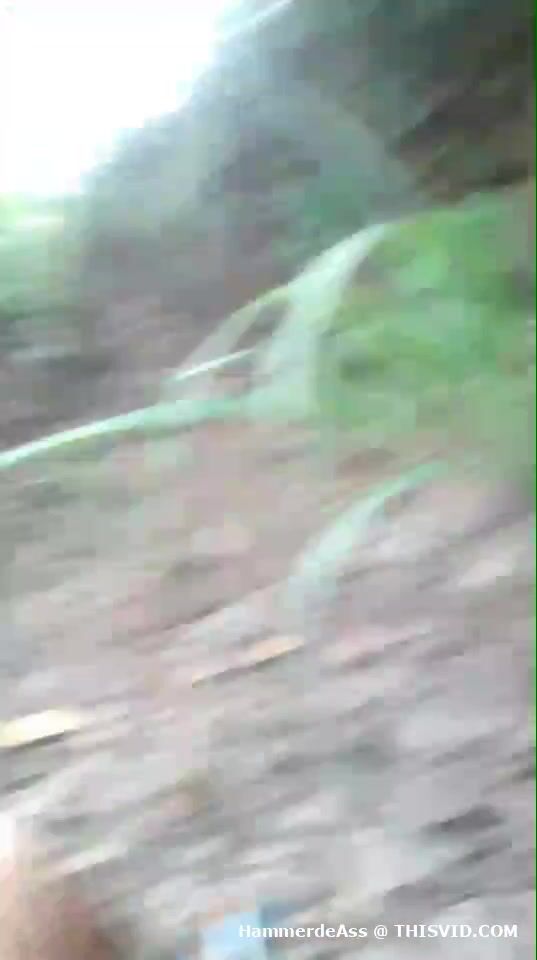 Seductive babe pooping behind the tree