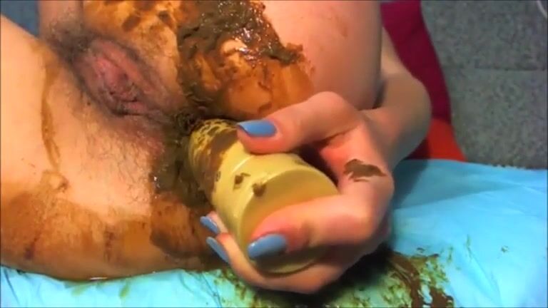 The girl's asshole is packed full with shit and a toy