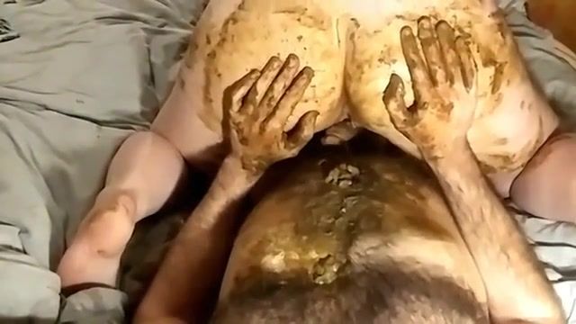mature couple fuck hard after smearing brown shit on their naked bodies.