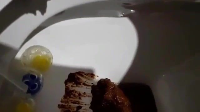Thick turd dropped on toilet seat. She wiped her dirty ass with toilet paper.