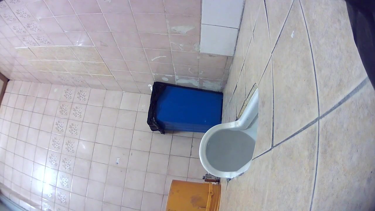 Three sexy girls poop by turn in a public bathroom. Sexy tease and round butts.