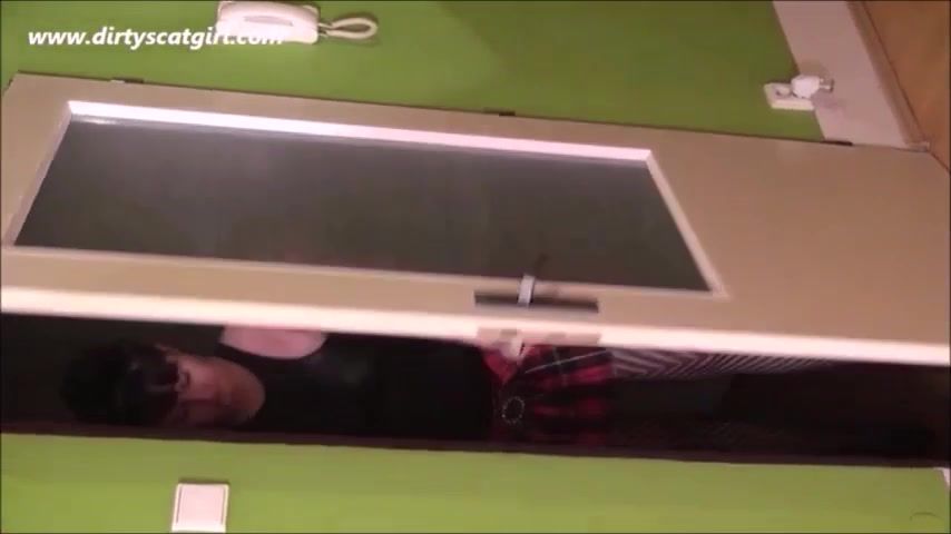Two brunette girls puking on each other after smearing poop on their naked bodies. Both of them are wearing black latex outfits.