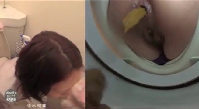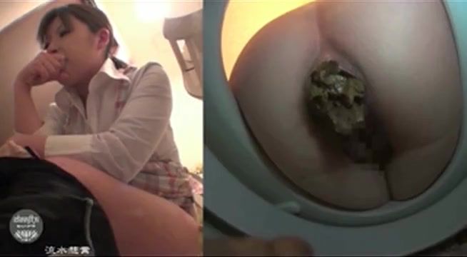 Two Japanese schoolgirls are pooping in public bathrooms. A hidden camera is installed there.