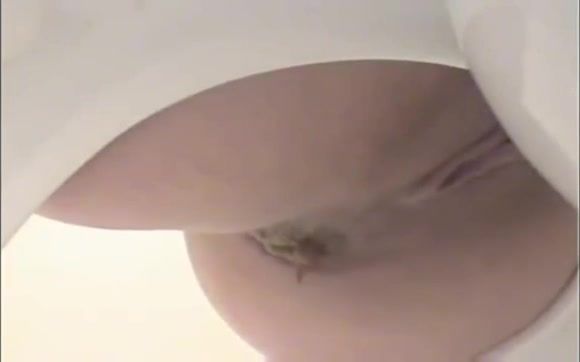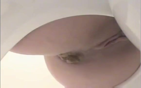 She sits naked on a white homemade toilet and she's shitting a big brown turd from tight ass.