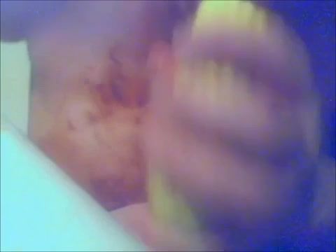 Chubby babe is using a long vegetable to masturbate. She smears poop on her naked body.