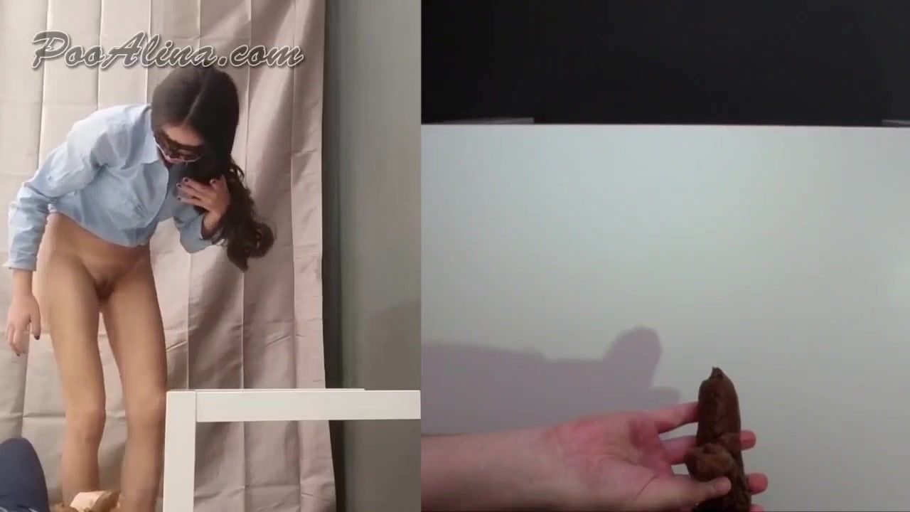 Brown haired teen spreads her butt cheeks wide opened so she can easily push a big turd in boyfriends's mouth.