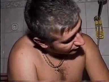 Mature couple are having fun in the bathroom. The guy smears fresh shit on his girlfriends body. He tried to wash all that scat in the tub.