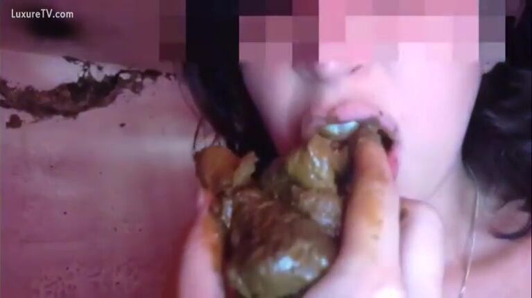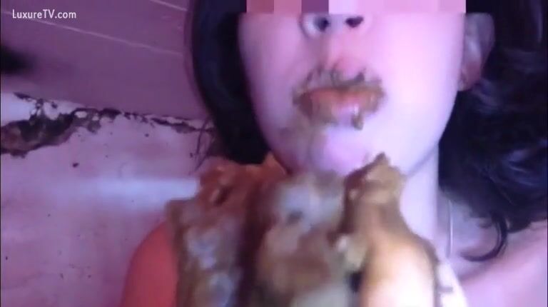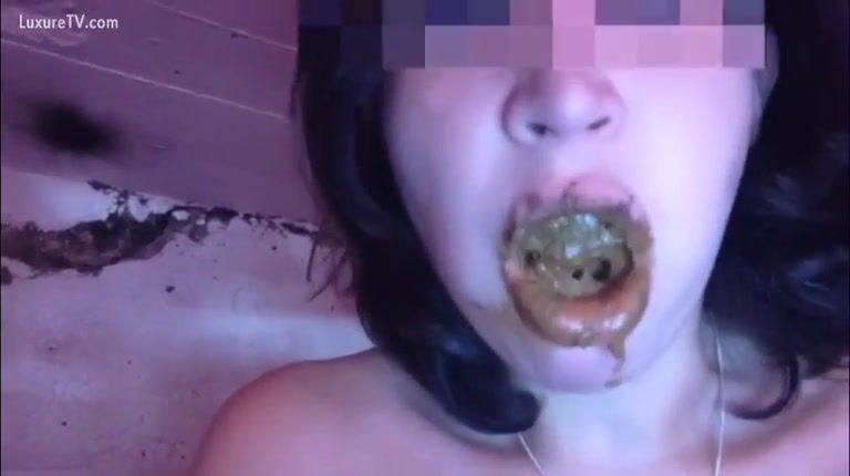 Watch brunette girl eating shit