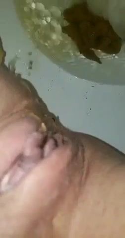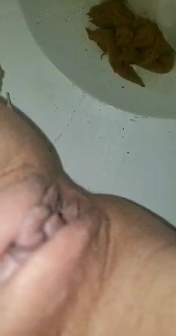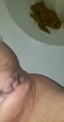 Sexy wife needs to release. She can't hold it anymore, that's why she's pooping in that toilet.