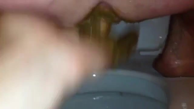 Hot wife shitting on her husband hands while he slowly inserts two fingers into her tight asshole.