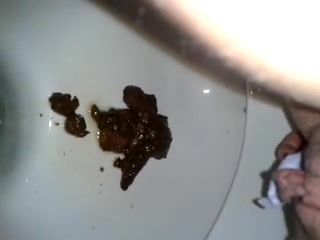 Shaved wife went to poop twice in same day cause she ate something bad at lunch. Her husband always records her ass in close up.