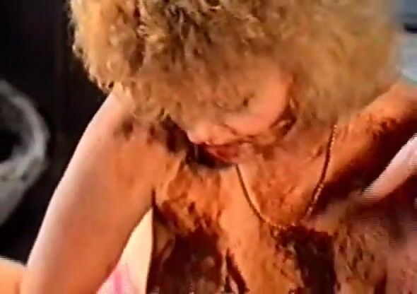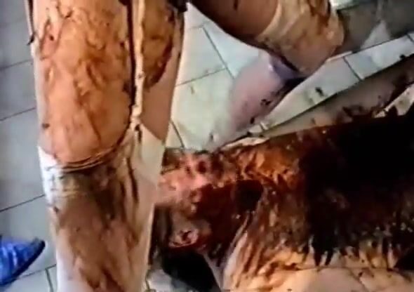 Smearing shit on her male slave