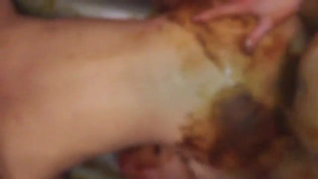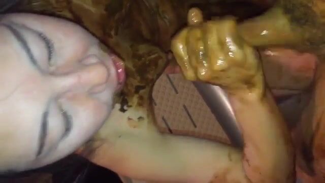Woman eats shit from her ass in a bowl