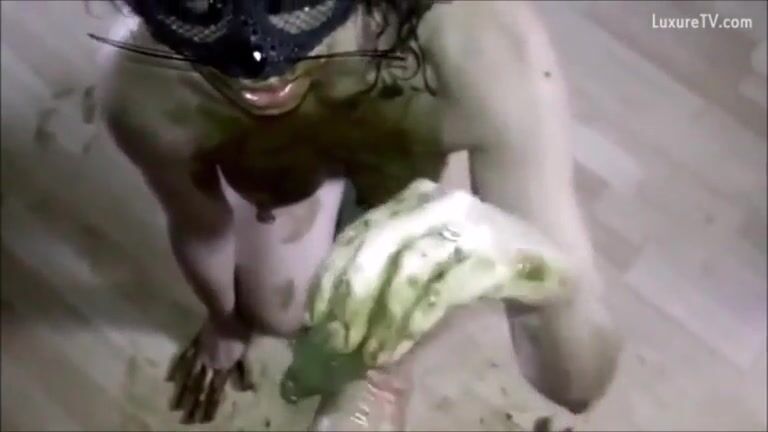 Woman in mask licks shit in her ass