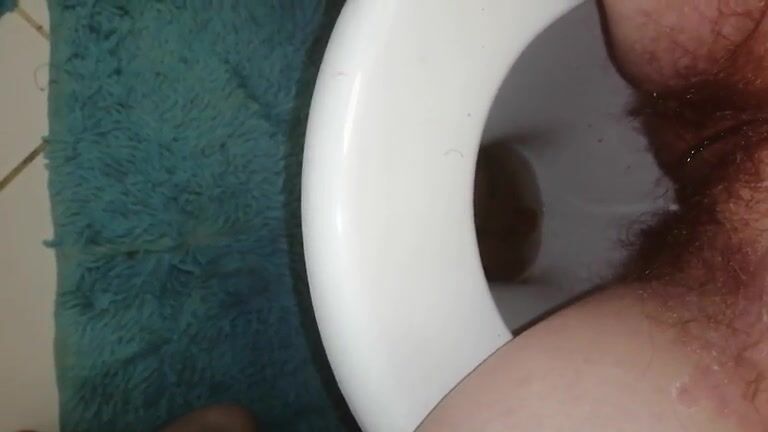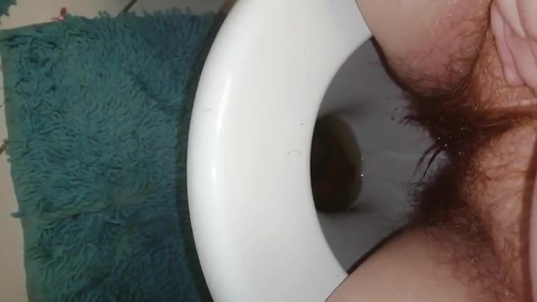 Woman shits in the toilet, closeup of her ass