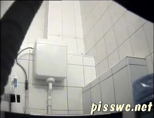 Woman squats and pisses in a public toilet