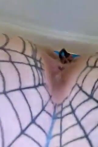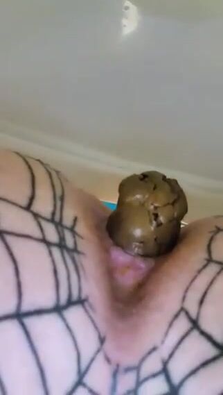 Woman takes a huge shit through her fishnet stockings