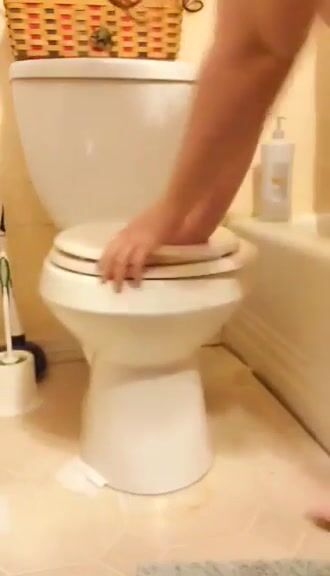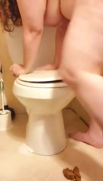 Woman takes a shit on the toilet and shows it to the camera