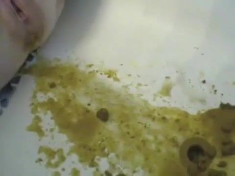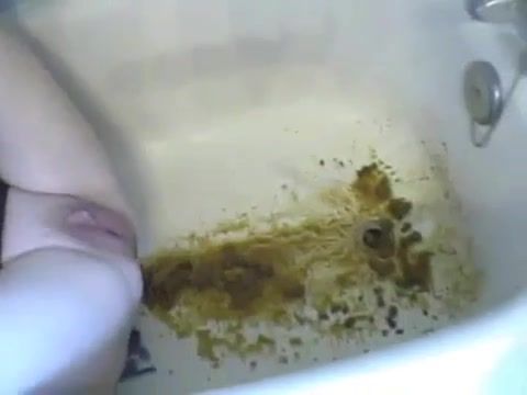 Sexy girl sitting naked in bathtub while she's pooping liquid shit with pressure. She spreads her legs, to tease us with her pussy and ass.